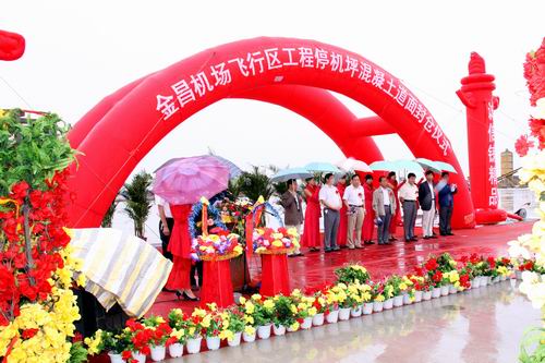 2010年8月20日上午10時(shí),金昌機場(chǎng)飛行區停機坪混凝土道面工程順利封倉。甘肅省交通運輸廳、金昌市政府、甘肅機場(chǎng)建設投資管理公司、甘肅機場(chǎng)項目建設指揮部及施工單位等有關(guān)單位領(lǐng)導現場(chǎng)見(jiàn)證了道面工程順利封倉的時(shí)刻。
