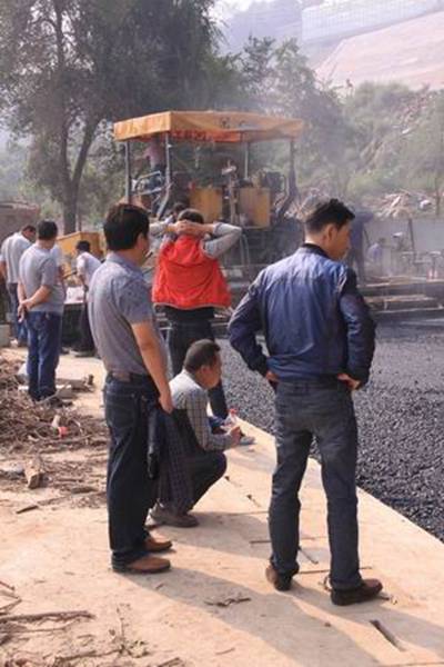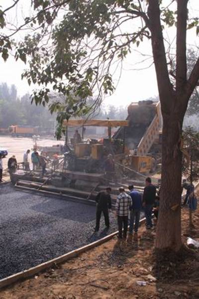 圖1—2為攤鋪機械正在跑道上進(jìn)行鋪設作業(yè)的場(chǎng)景