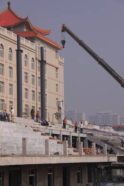 圖3為繁忙的看臺吊裝施工的場(chǎng)景