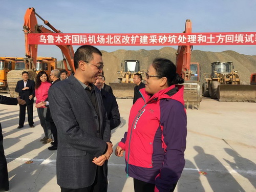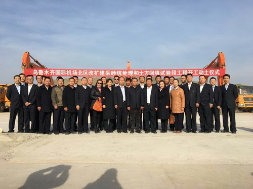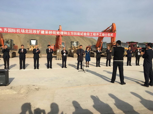 2016年10月16日上午11時(shí),我司承建的新疆烏魯木齊國際機場(chǎng)北區改擴建工程采砂坑處理和土方回填試驗段工程Ⅰ標段項目順舉行了開(kāi)工儀式。
