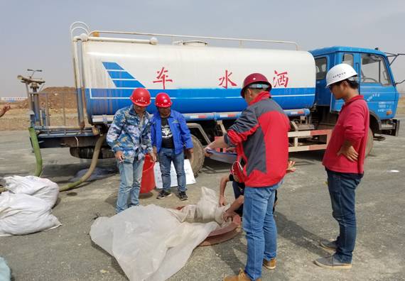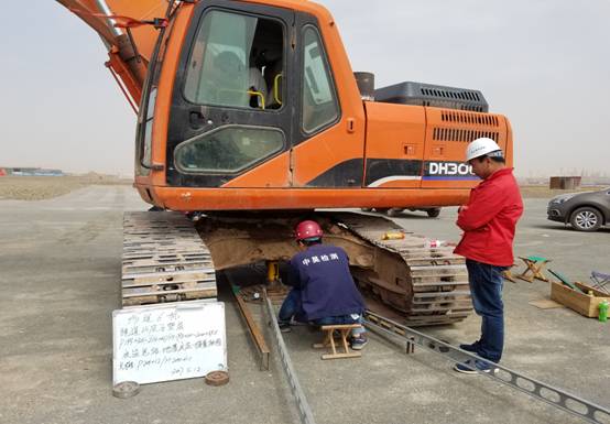 驗收小組現場(chǎng)檢測山皮石墊層固體體積率
