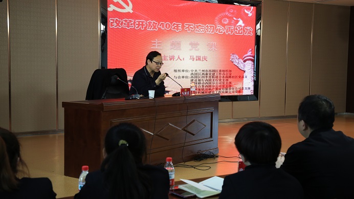 為紀念改革開(kāi)放40周年,進(jìn)一步激勵黨員不忘初心、牢記使命。 11月28日,公司黨委牽頭舉辦了 “改革開(kāi)放四十年 不忘初心再出發(fā)”的主題黨課。120余名黨員在我司大會(huì )議室聆聽(tīng)了講座。本次主題黨課在蘭州市西固區委組織部和西固區兩新黨建辦公室指導下開(kāi)展,本樓宇內5家單位以及兩新辦和社區共同參與。組織這種形式的大黨課,就是貫徹落實(shí)全區組織工作會(huì )議精神,加強“五化五強”黨支部建設,推進(jìn)街道社區黨建、單位黨建、樓宇黨建互聯(lián)互動(dòng),努力提升城市基層黨建工作水平。