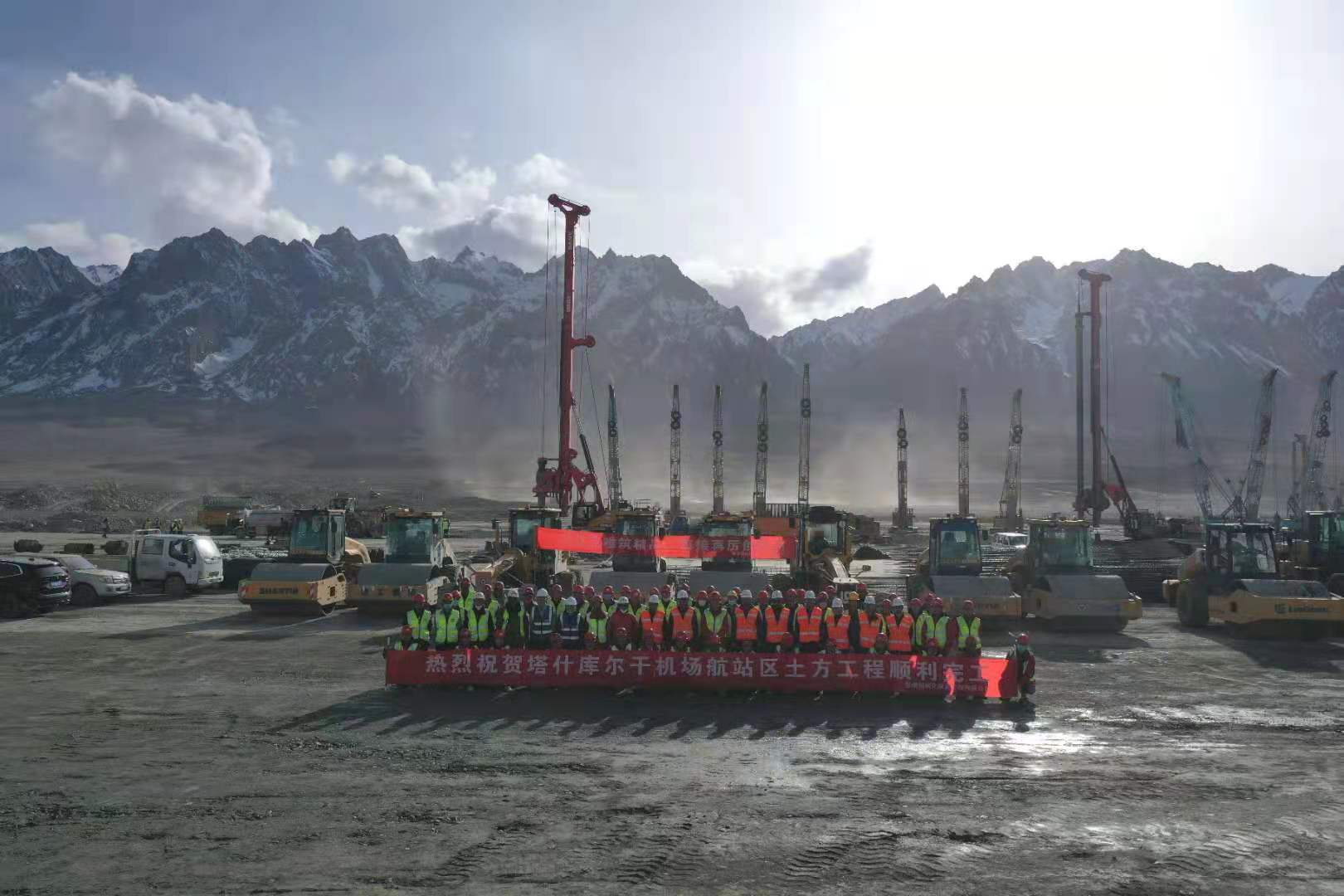 該項目自2020年4月26日開(kāi)工以來(lái),項目部全體員工在高海拔、地形復雜、凈空條件差、氣候惡劣的條件下,克服兩次疫情帶來(lái)的不利影響,響應號召積極復工復產(chǎn)、防疫生產(chǎn)兩手抓,僅用短短6個(gè)月的時(shí)間完成了土方回填約720萬(wàn)立方米、地基處理約190萬(wàn)平方米、土石方挖運約410萬(wàn)立方米的艱巨任務(wù),安全順利的完成了帕米爾機場(chǎng)航站區土方施工任務(wù),獲得了指揮部領(lǐng)導及監理公司的一致好評。
