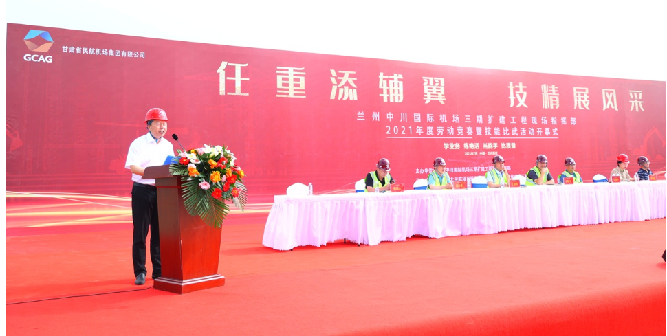 7月27日上午,由蘭州中川國際機場(chǎng)三期擴建工程現場(chǎng)指揮部主辦,我司與西安西北民航項目管理有限公司承辦,為期兩天的蘭州中川國際機場(chǎng)三期擴建工程2021年度“勞動(dòng)競賽曁技能比武”活動(dòng)順利開(kāi)幕。蒞臨開(kāi)幕式的領(lǐng)導有蘭州市蘭州新區黨群部秦副部長(cháng)、蘭州市西固區總工會(huì )楊主席、蘭州中川國際機場(chǎng)三期擴建工程現場(chǎng)指揮部黨委書(shū)記、指揮長(cháng),黨委副書(shū)記、常務(wù)副指揮長(cháng)等領(lǐng)導,以及我司黨委書(shū)記、副總經(jīng)理和來(lái)自8家參賽單位的領(lǐng)導和參賽選手。