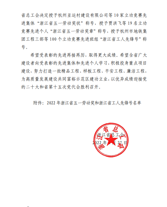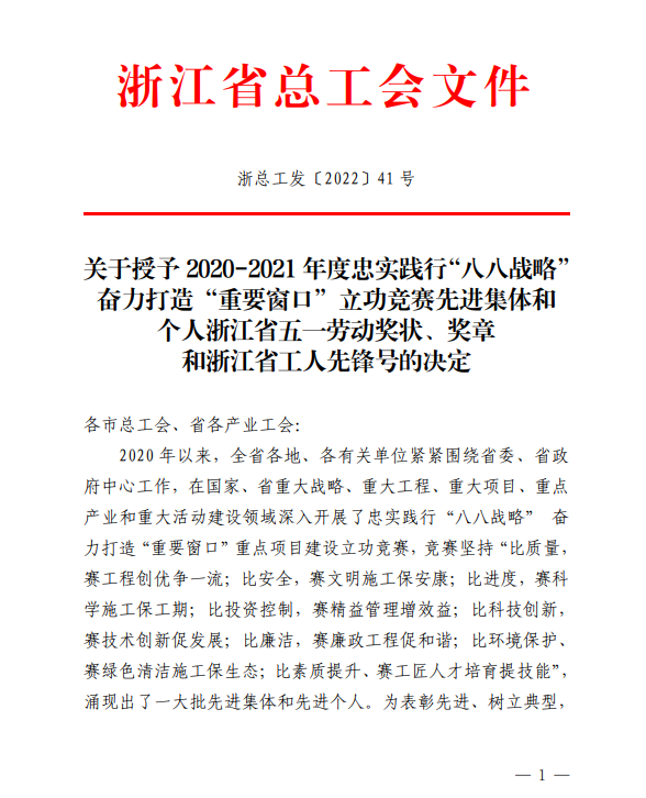 4月27日,我司新建浙江麗水機場(chǎng)(第一批)02 標段項目部榮獲“浙江省工人先鋒號”稱(chēng)號。