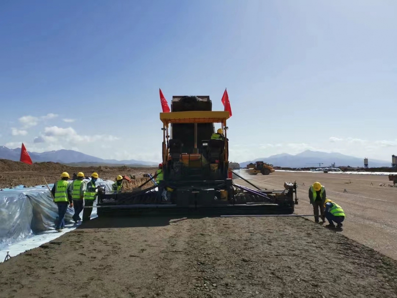5月28日,伴隨著(zhù)第一車(chē)水泥穩定砂礫混合料緩緩倒入攤鋪機料斗,標志著(zhù)由我司承建的新疆和靜(巴音布魯克)機場(chǎng)飛行區跑道水穩基層試驗段施工正式拉開(kāi)序幕。